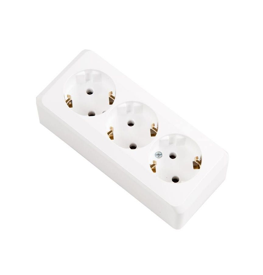 ЭТЮД Розетка тройная открытой установки с заземлением без шторок 16А 250B, белый - ЭНЕРГОПРОФ -  Комплексный поставщик электроматериалов