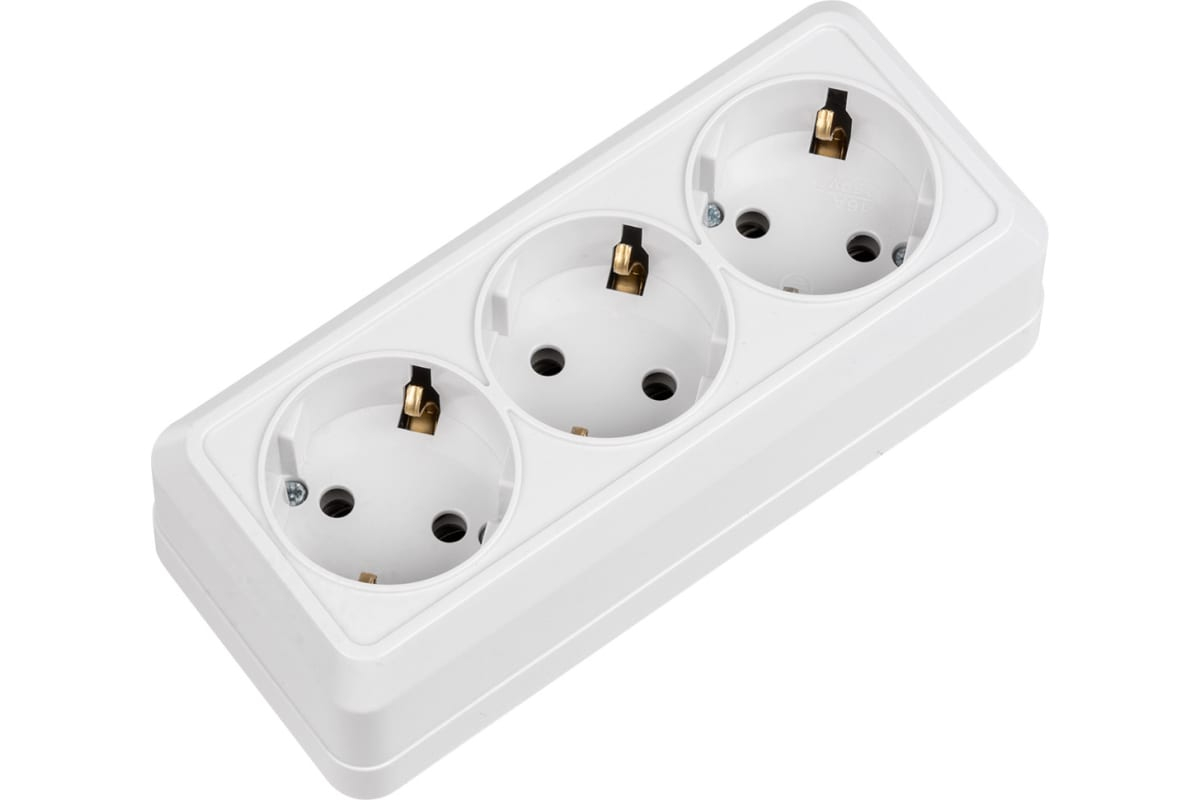 Розетка 3-х местная горизонтальная 2П+3 открытой установки IP20 16A белая "Ладога" TDM