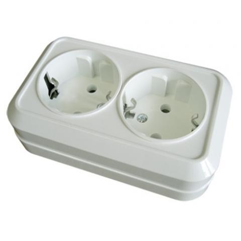 Главная / Интернет-магазин / Электроустановочные изделия / Розетки / Розетки открытой установки (накладные) / Розетка двойная 2П+3 открытой установки IP20 16А, белая "Ладога" TDM